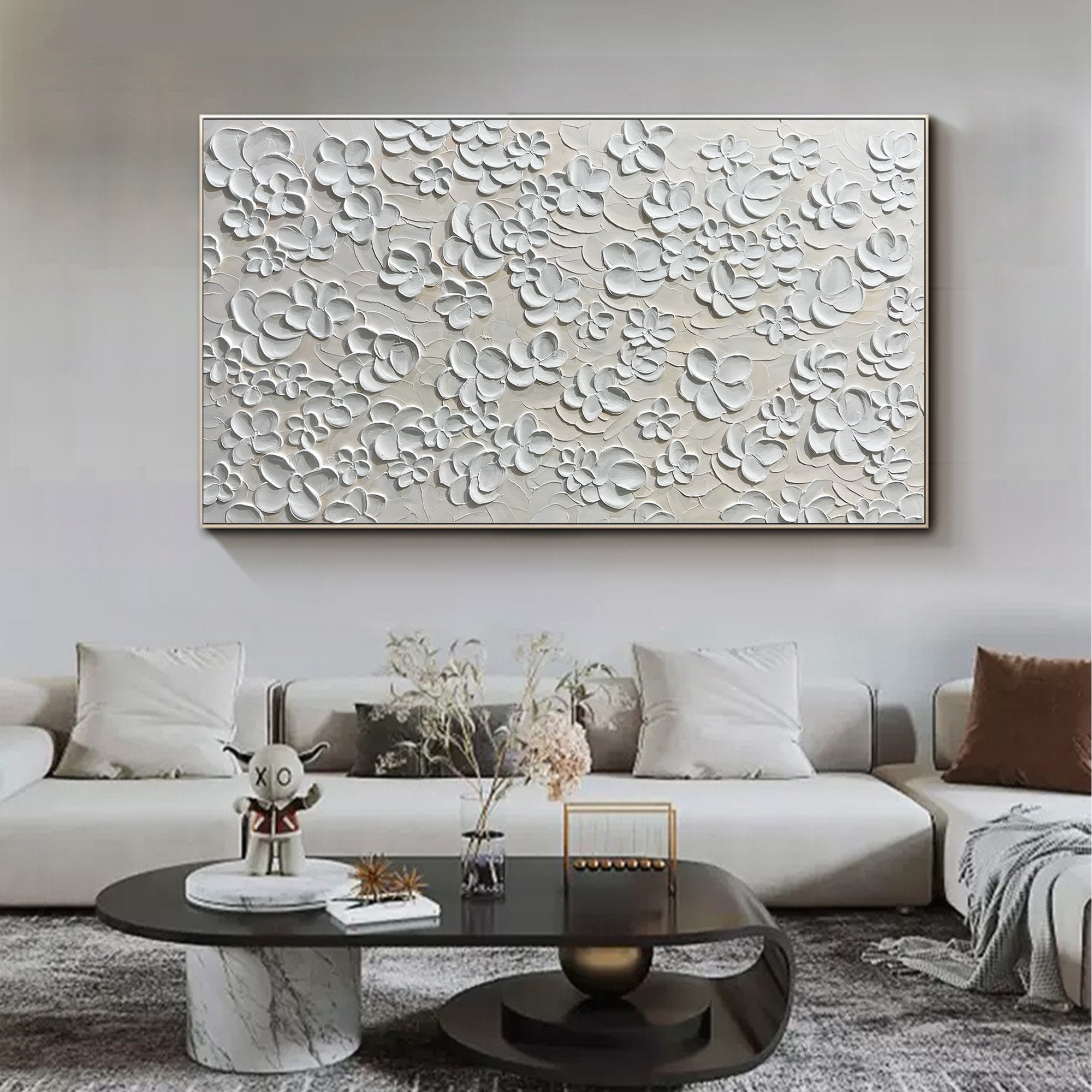 Whispers of Serenity - White Textured Flower Oil Painting 3D Minimalist Floral Wall Art